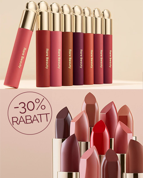 Aktuell gibt es 30% Rabatt auf 2 beliebte Lippen Produkte von Rare Beauty. Reduziert sind: Soft Pinch Tinted Lip Oil Kind Words Matte Lipstick Du
