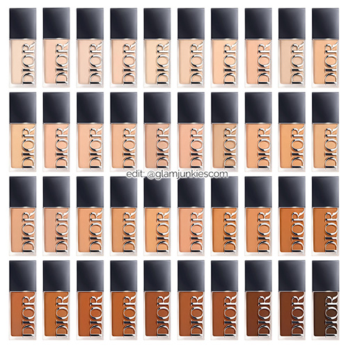 Bei beiden Foundations wird angegeben, dass sie in 45 Farbtönen mit 6 Untertönen erhältlich sind, in Deutschland sind aber aktuell von der Dior Forever Skin Wear nur 40 Farben verfügbar, die Dior Forever Skin Glow ist in 45 Farben erhältlich.