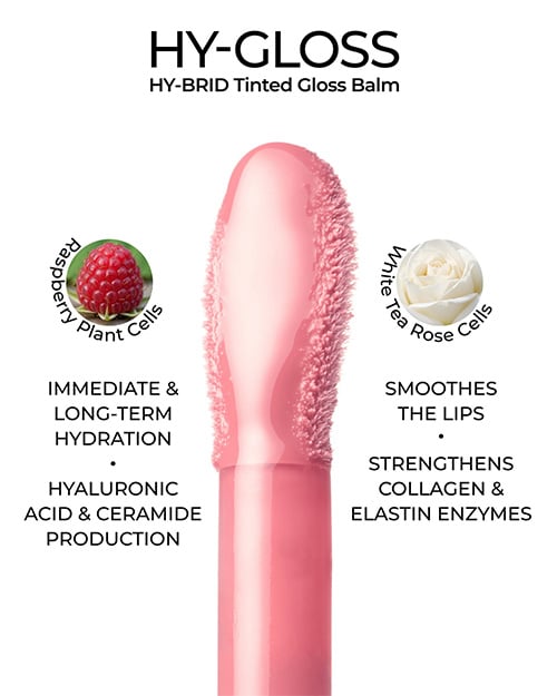 Der neue Hy-Gloss Hy-Brid Tinted Gloss Balm an kombiniert, laut Marke, Farbe und Pflege in einer glossartigen Balm-Textur.